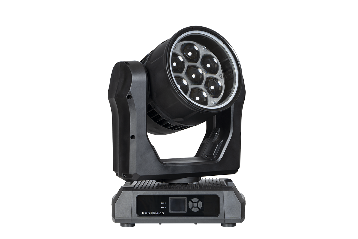 Krachtige IP65 7x60W LED Moving Hea. De zeven RGBL-LED’s leveren een sterke lichtopbrengst met vloeiende kleurmenging en een zoom van 4,5° tot 48°. Dankzij 540° pan, 270° tilt, strobe-effect en een dynamische LED-ring creëer je indrukwekkende lichteffecten. Geschikt voor binnen- en buitengebruik